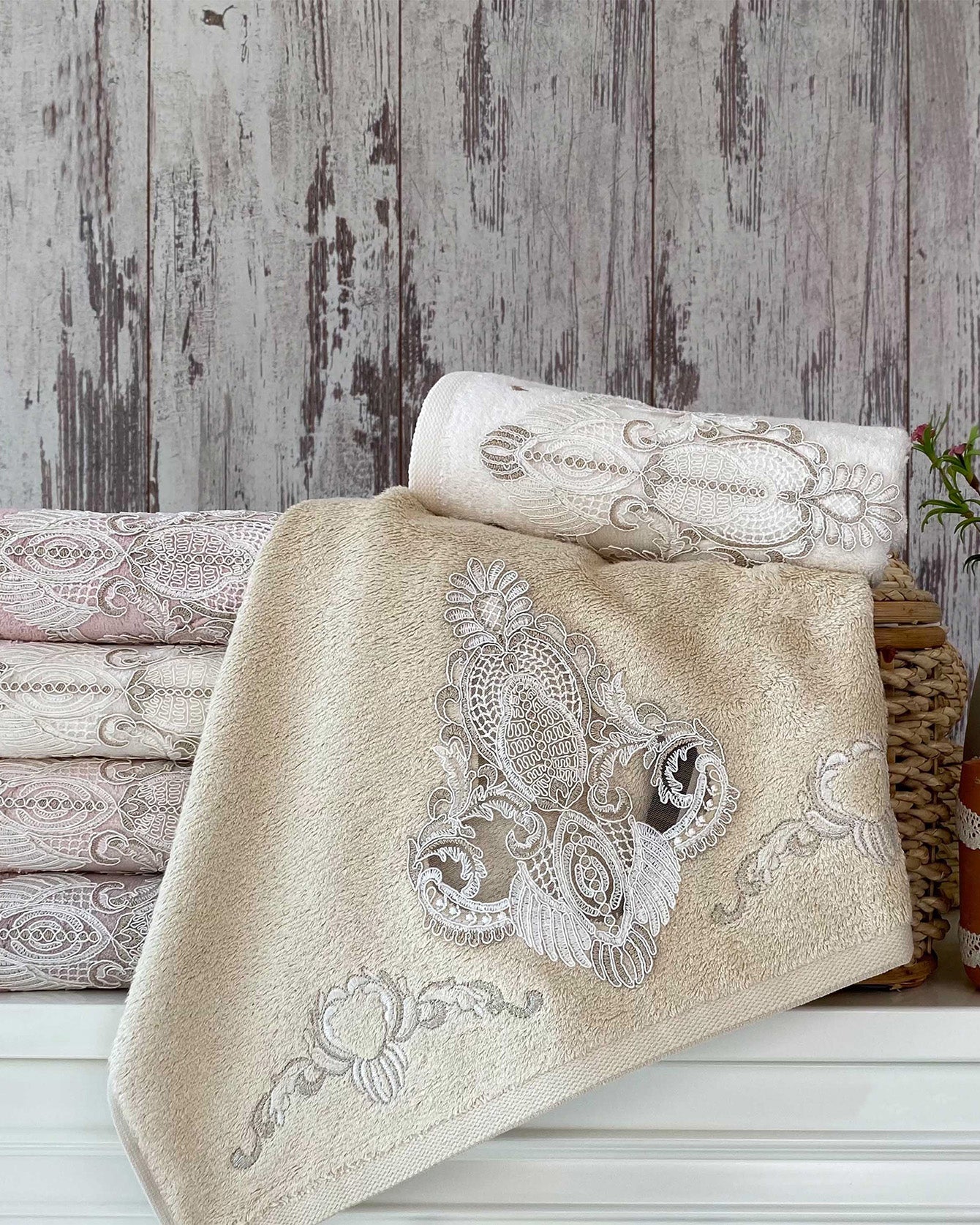 Add a romantic touch to your bathroom with elegant lace details.